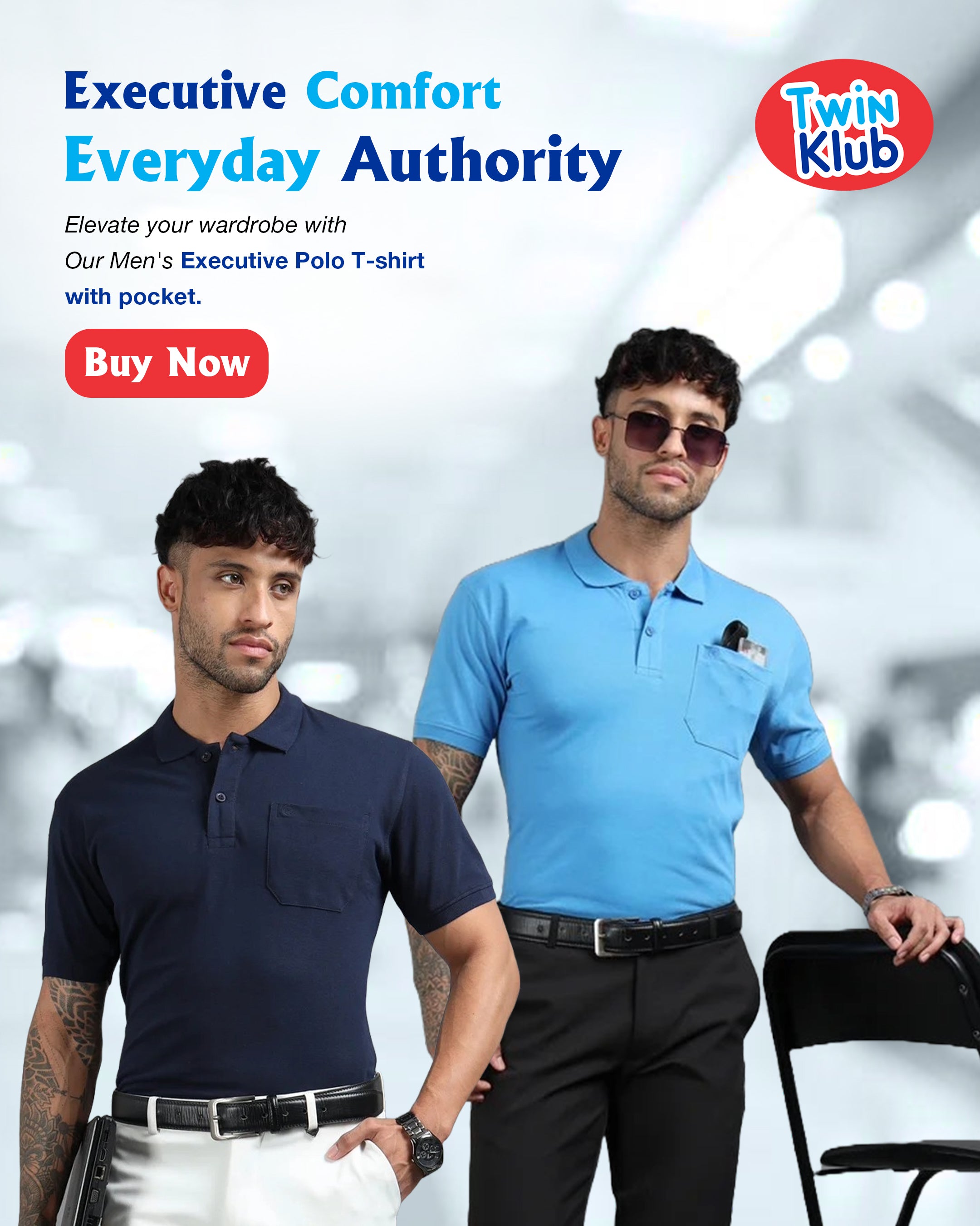 Mens Executive Cotton Polos with Pocket Frost blue Polo T-shirt TK707