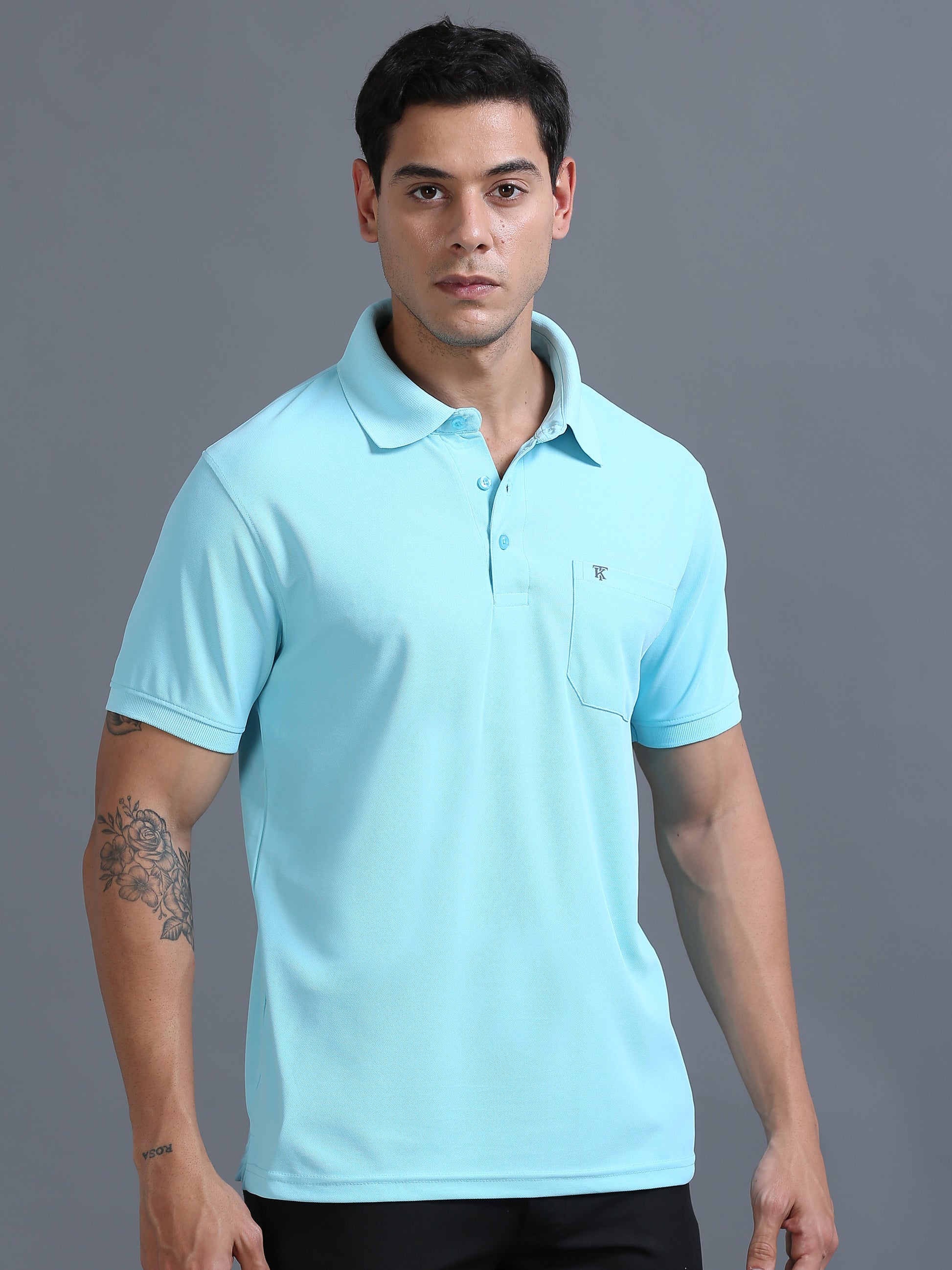 Mens Smart Dry fit Arctic Blue Polo Tees with Pocket TK710
