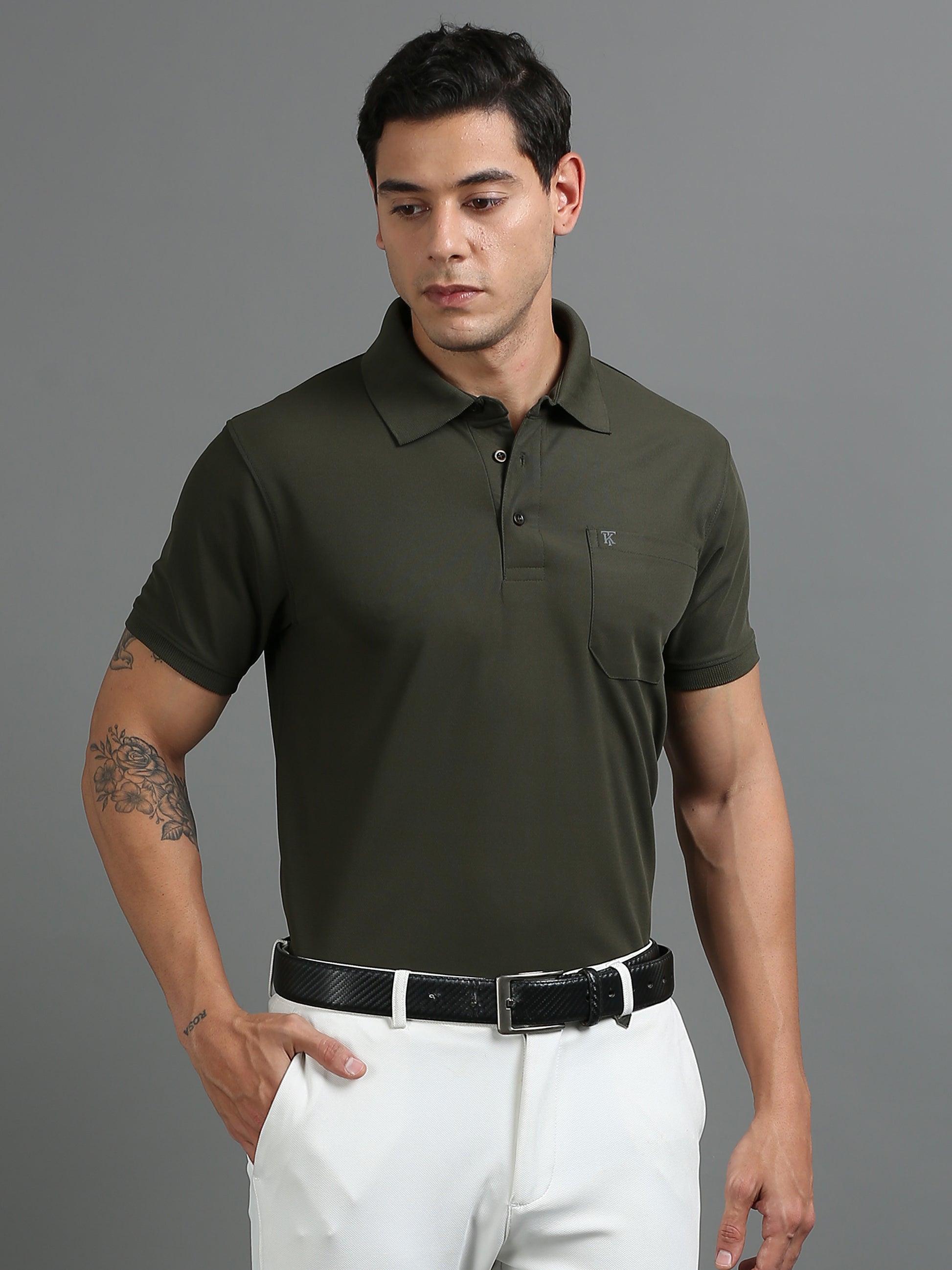 Mens Smart Dry fit Cedar Olive Green Polo Tees with Pocket TK710